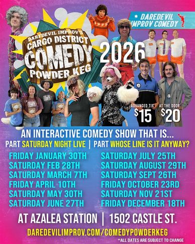 What's one part SNL, one part 'Whose Line...' and all funny? It's the Cargo District Comedy Powder Keg! This exciting new show features DareDevil Improv and a unique blend of improv comedy shows and sketch comedy twice a month in the Cargo District. Don't miss out on these unforgettable Wilmington comedy events!